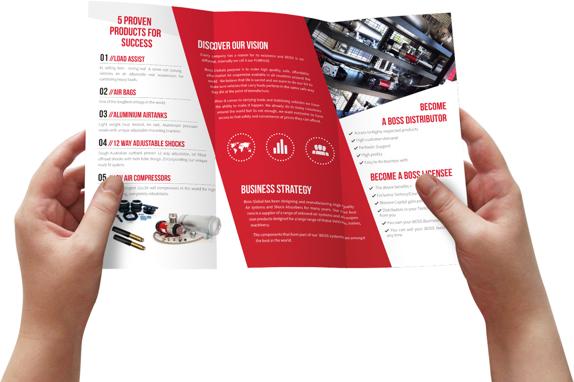 Our distributors have access to a wide range of BOSS products including our complete range of load assist kits. They should have a business that is aligned with automotive parts. Furthermore be active in the 4WD and small commercial vehicle parts market. Or another industry where air bags, compressors and tanks are required. Doing business is as simple as emailing an order. BOSS will send you an invoice and the goods will be dispatched as soon as the goods are paid for. Being a distributor is an excellent way of launching a new product suite and being first in a new market while also making great returns.